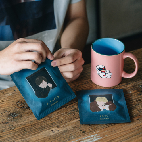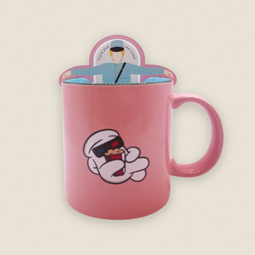 「Theater」Music Videoに登場するハンドくんがプリントされた、コーラルピンクのマグカップ。