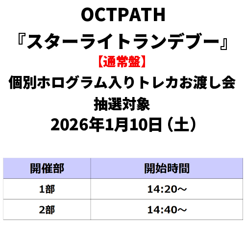 UNIVERSAL MUSIC STORE限定特典:OCTPATH 8th single『スターライトランデブー』個別ホログラム入りトレカお渡し会抽選対象ページ 抽選権