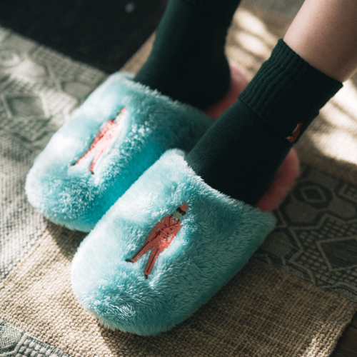ふわふわモコモコなパステルカラーのルームシューズ。ルームウェアとの組み合わせもバッチリで、気分が上がる1足です。